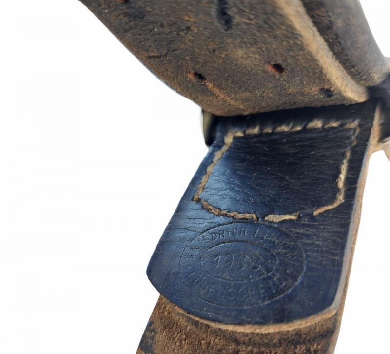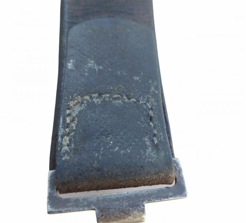 Original German Wehrmacht (Heer) belt & buckle with leather tab. The whole is in a neat but used condition. Both the strap and the buckle are well stamped. Unfortunately, the dating of the belt is difficult to read. The buckle is dated 1938.