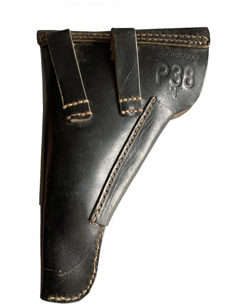 Original German P38 softshell pistol holster. The holster is in mint condition. Marked on the back with P38 and maker marked with the following rbnr: 0/0833/0007. In addition, the holster is marked with a police (Polizei) acceptance stamp.