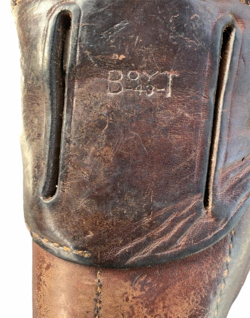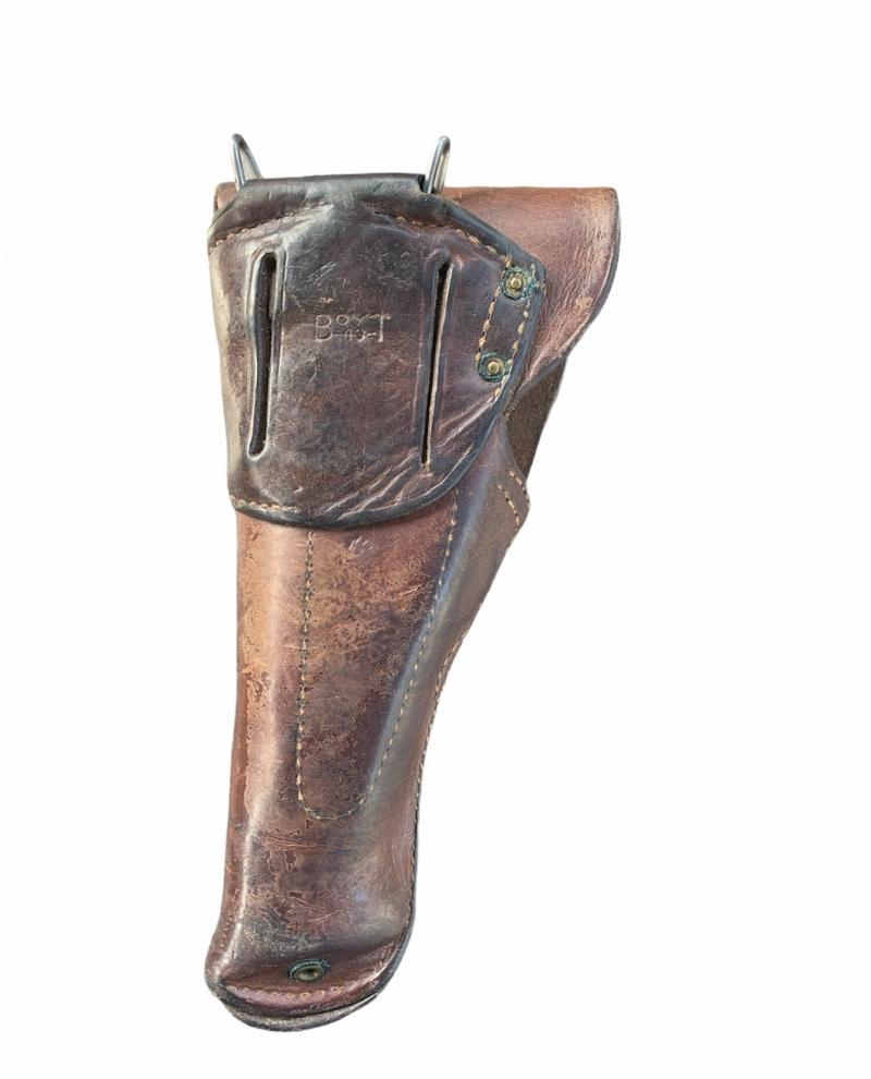 Original leather American M1916 pistol holster for the M1911 pistol. The holster is made by the company BOYT and dated 1943. The holster is in a used but neat condition!