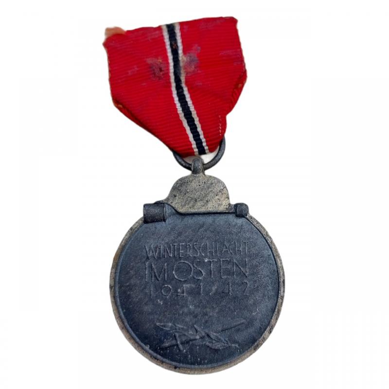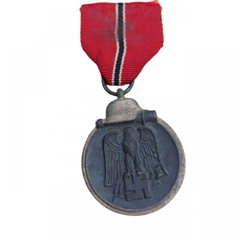 Original German Eastern Front Medal (Medaille für die Winterschlacht im Osten). The medal comes with the accompanying certificate. The whole is in a used but neat condition.