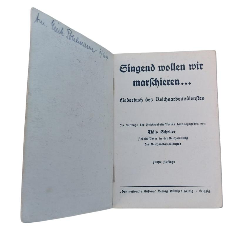 Original German songbook for the Reichsarbeitdienst (Labour service). Full of period songs and drawings. In a used but neat condition. Great cover!
