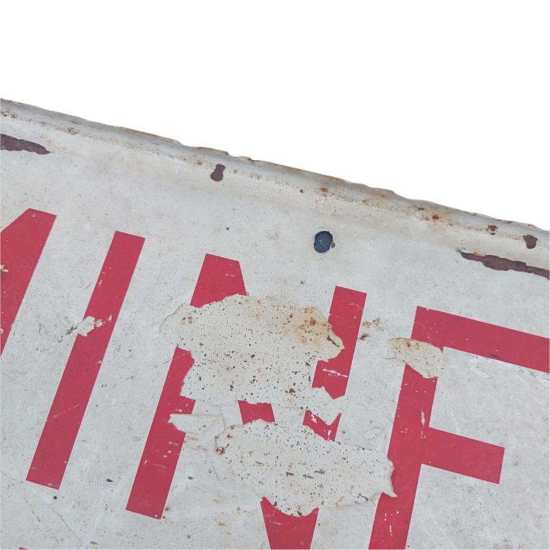 Original English road sign to warn of mines. The road sign is in used condition. The sign is very decorative in a diorama.