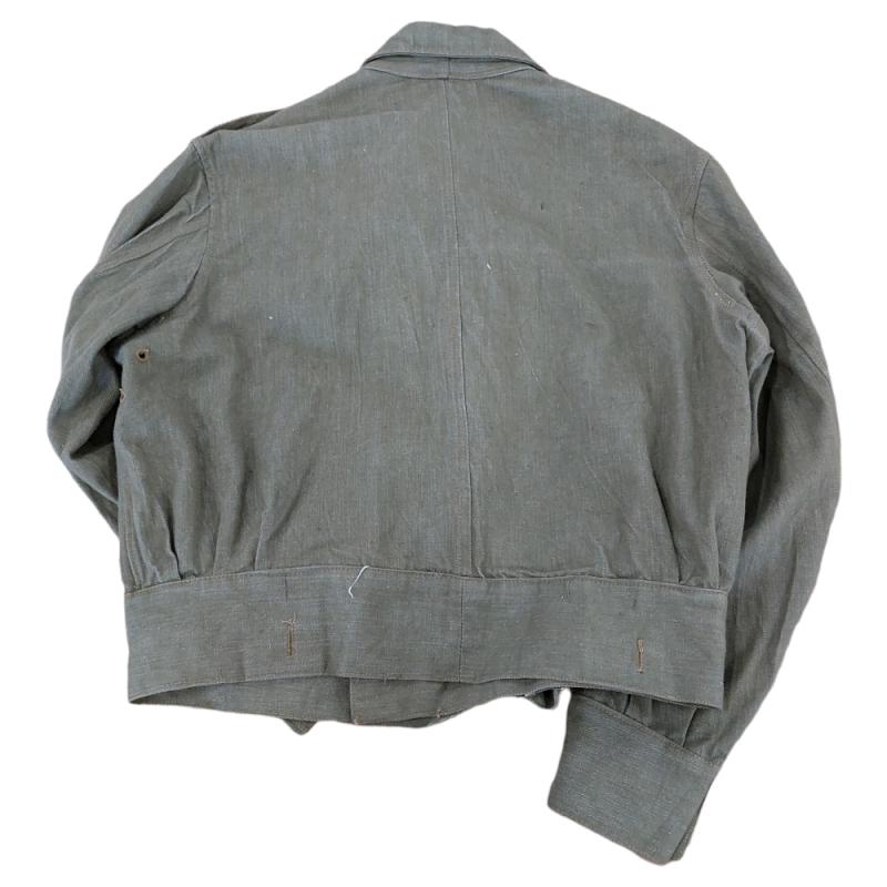 Original British denim battledress jacket from 1945. The jacket is in mint condition and still has a label which is very well legible.
