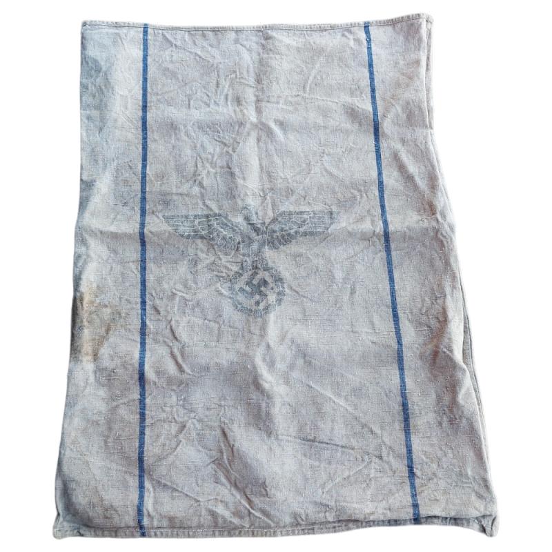 Original German Wehrmacht (Kriegsmarine) supply sack (Marine Verpflegungs Sack). This is a nice example from 1941 and shows the Third Reich type national eagle. The bag was in good but used condition. The Kriegsmarine version is hard to find!
