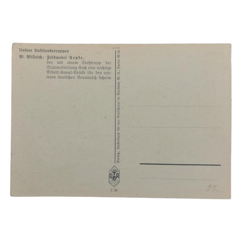 Original period Willrich postcard showing Fallschirmjäger 'Feldwebel Arpke'. The card is in unissued condition and is void of any writing or text. Nice and decorative original postcard in good condition!