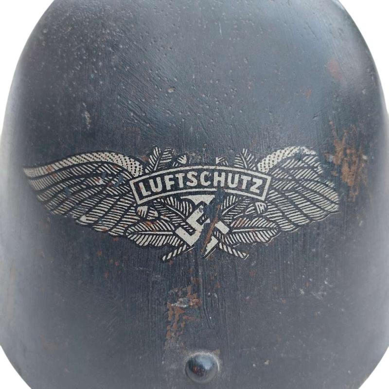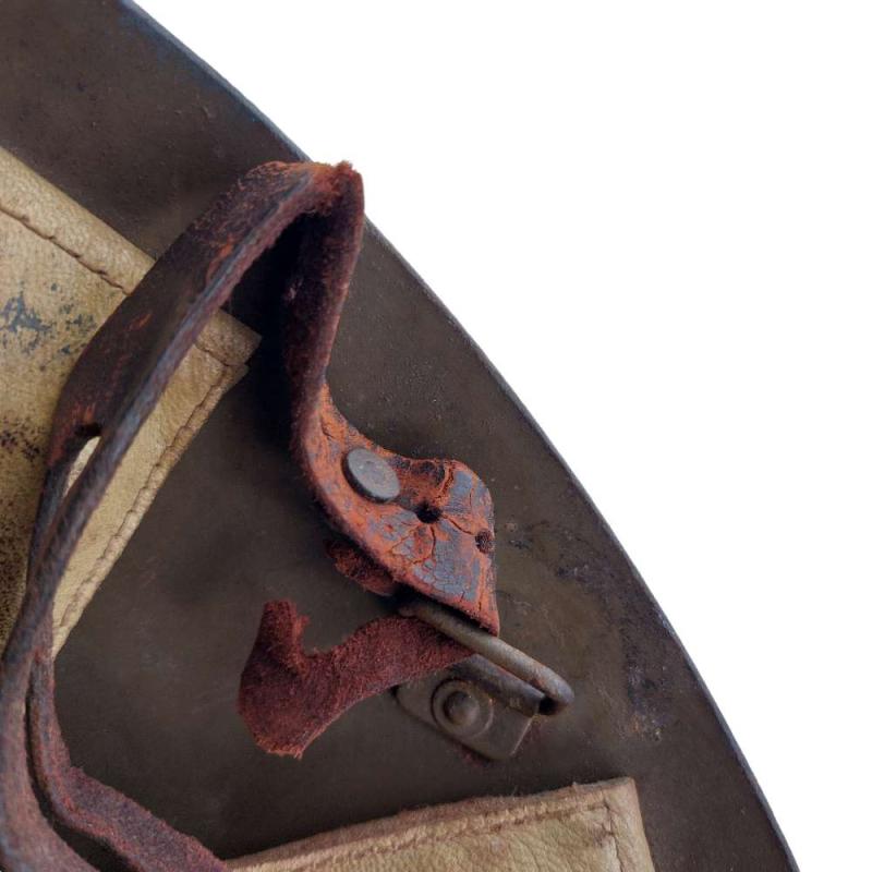 Original Czech M34 helmet which has been used by the German Luftschutz. The helmet is generally in good condition. The chinstrap is unfortunately torn and a bit fragile.Still a difficult helmet to find.