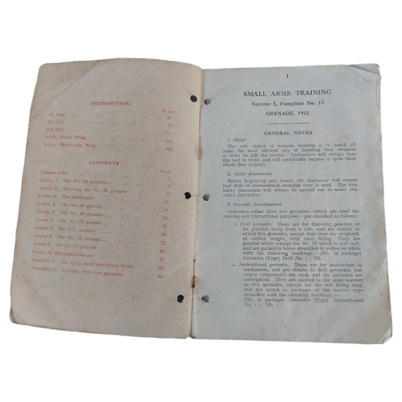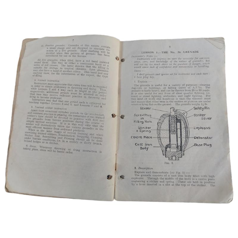 Original British manual for the various hand grenades in British service. The manual is dated 1942 and is in used condition.