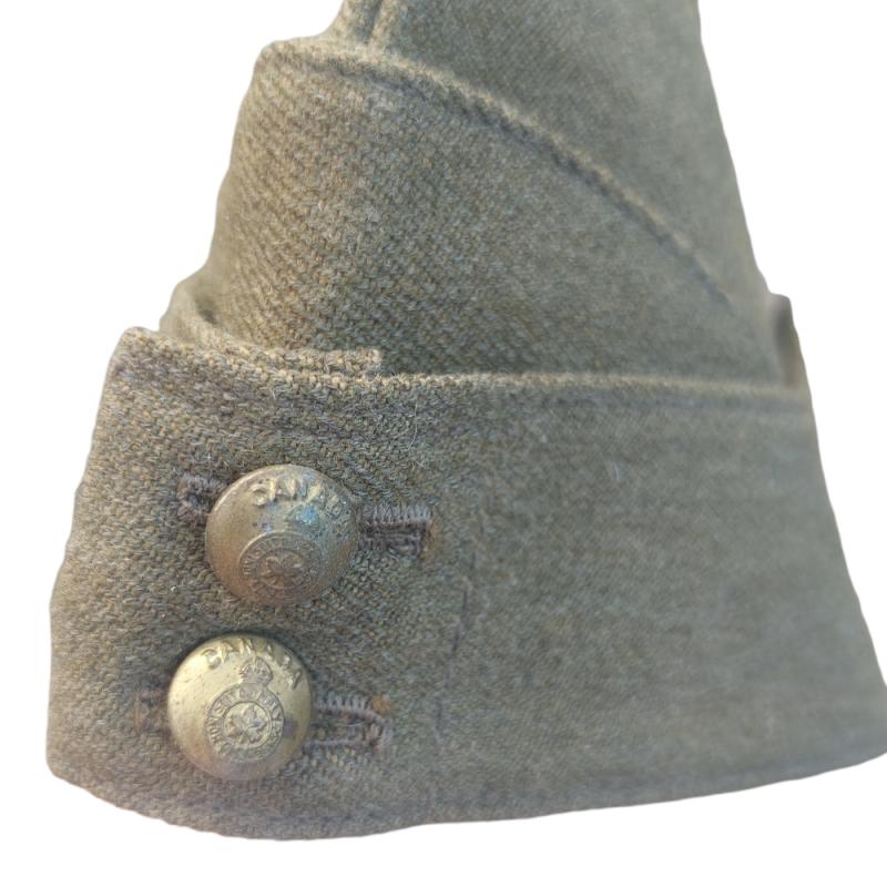 Beautiful Canadian army side cap in mint condition. The side cap was made in 1942 by Rayman Cap Co. from Toronto. The side cap comes in size 6 3/4 and is still nicely stamped with the Canadian broadarrow.