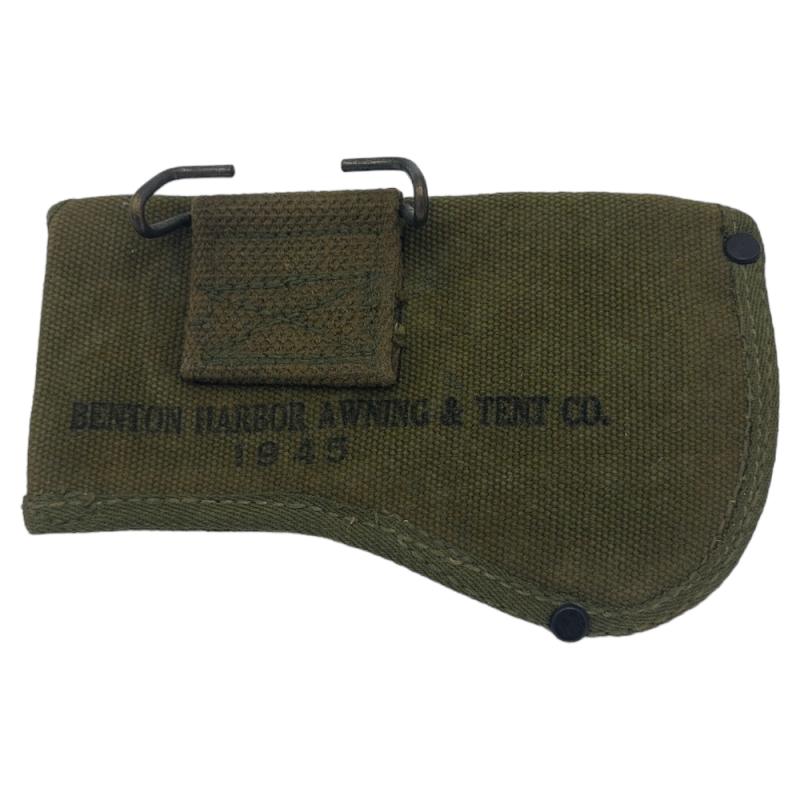 Late War American cover for an axe. The cover is maker (Benton Harbor Awning & Tent Co.) marked and dated 1945.