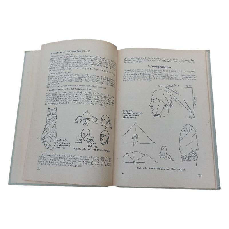 German instruction book for the Deutsches Rotes Kreuz (DRK) from 1943. The book has a bad spine but is otherwise in good condition. Very decorative item for your medical collection.