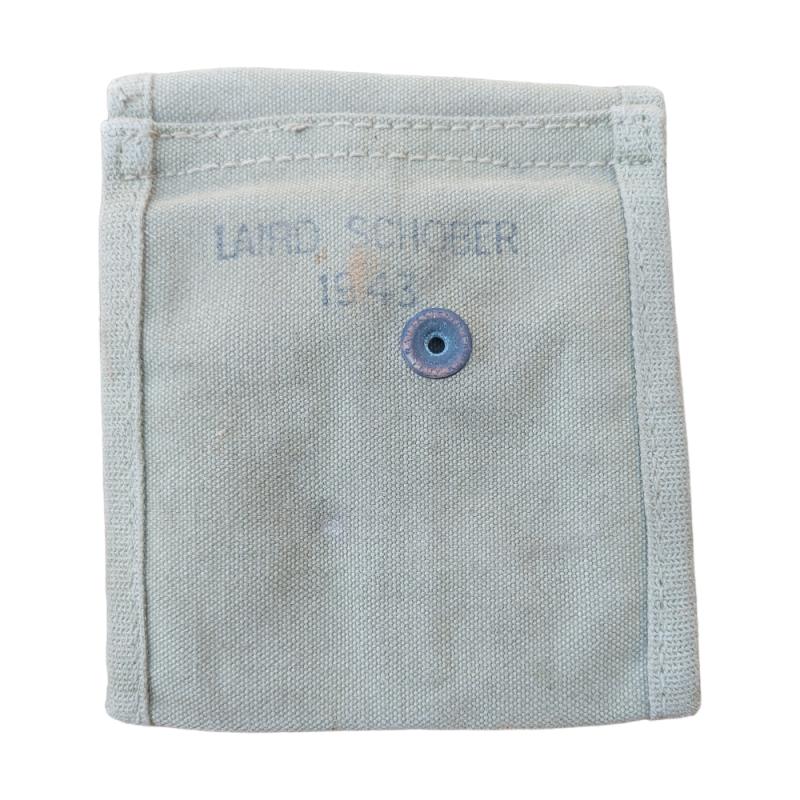 Original American magazine pouch for the M1 carbine. The pouch is in mint condition. The pouch is marked by the maker (LAIRD SCHOBER) and dated 1943.