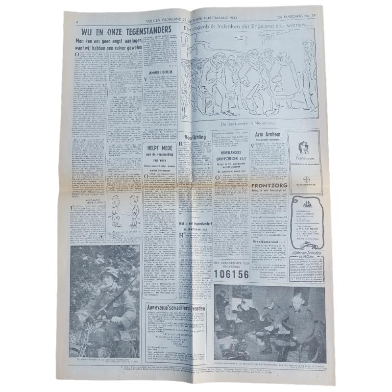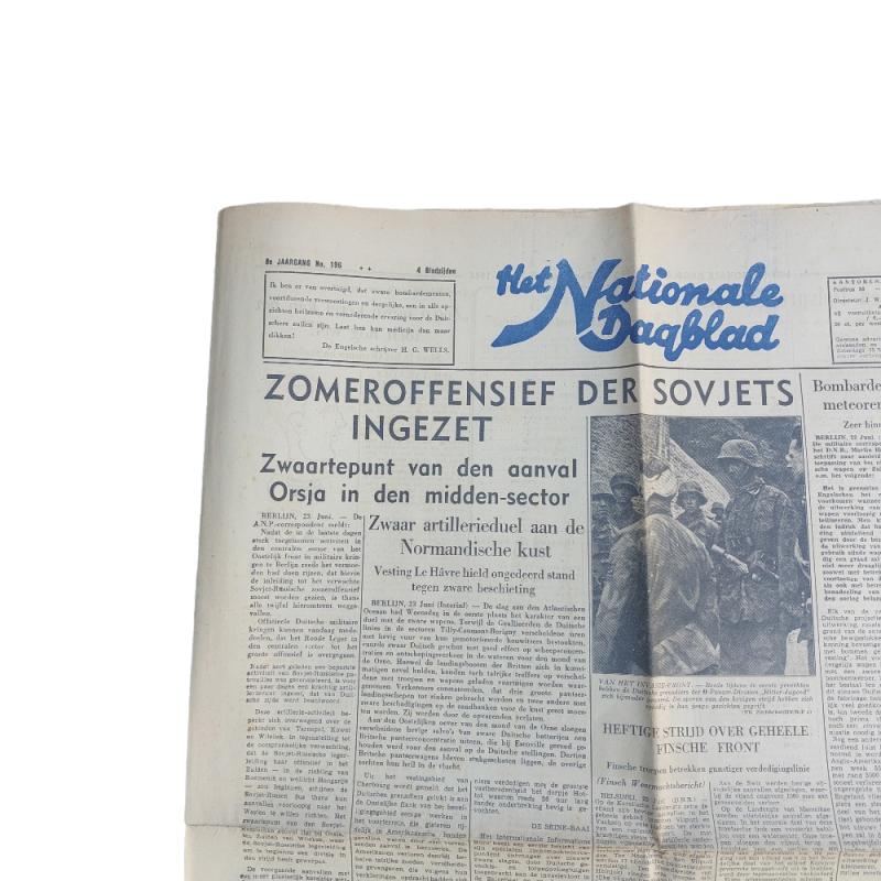 Dutch national socialist newspaper covering the battles in Normandy with the well-known photo of the 12th SS panzer division 'Hitlerjugend' on the front page.