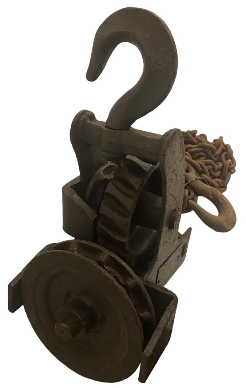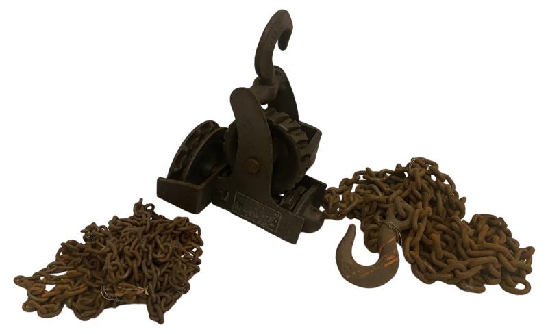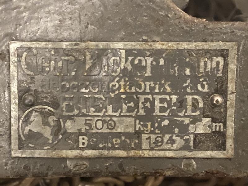 A real nice Plane Engine Hoist with its original chains. These hoists were made by “Gebrüders Dickermann” from Bielefeld. It can hoist up to 500kg No shipping possible due to the heavy weight