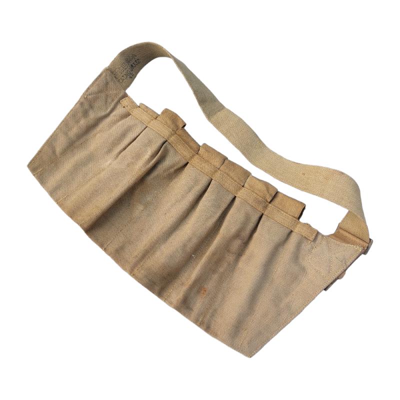British webbing (Airborne) Bandoleer for 7 extra stengun magazines. The bandoleer is in a neat condition and is dated 1944.