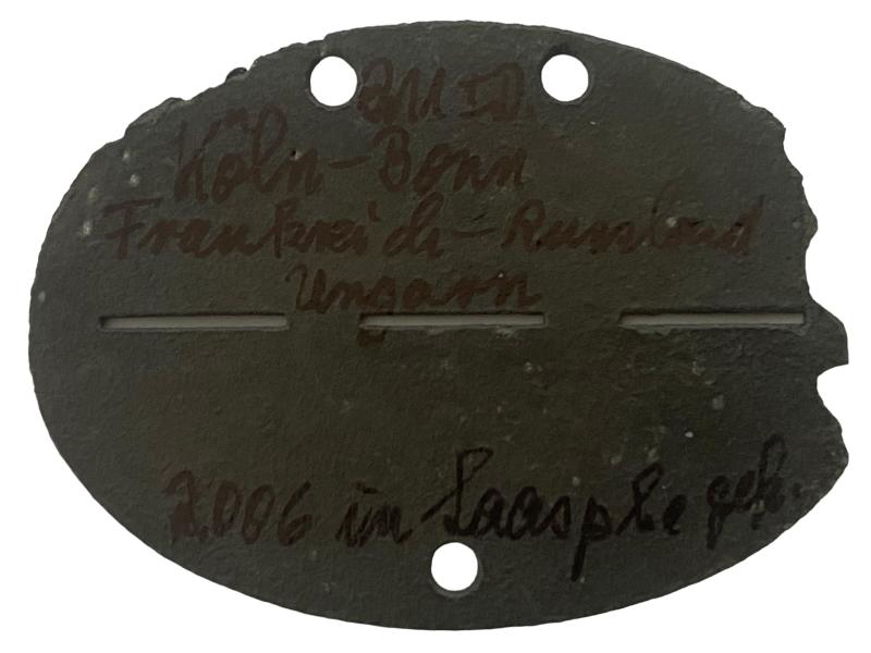 INF.PZ.JG.E.KP.211 Zinc Dog-Tag of the Infanterie-Panzerjäger-Ersatz-Kompanie 211 in relic condition. With Soldier-ID: 1026 and Blood-type: O