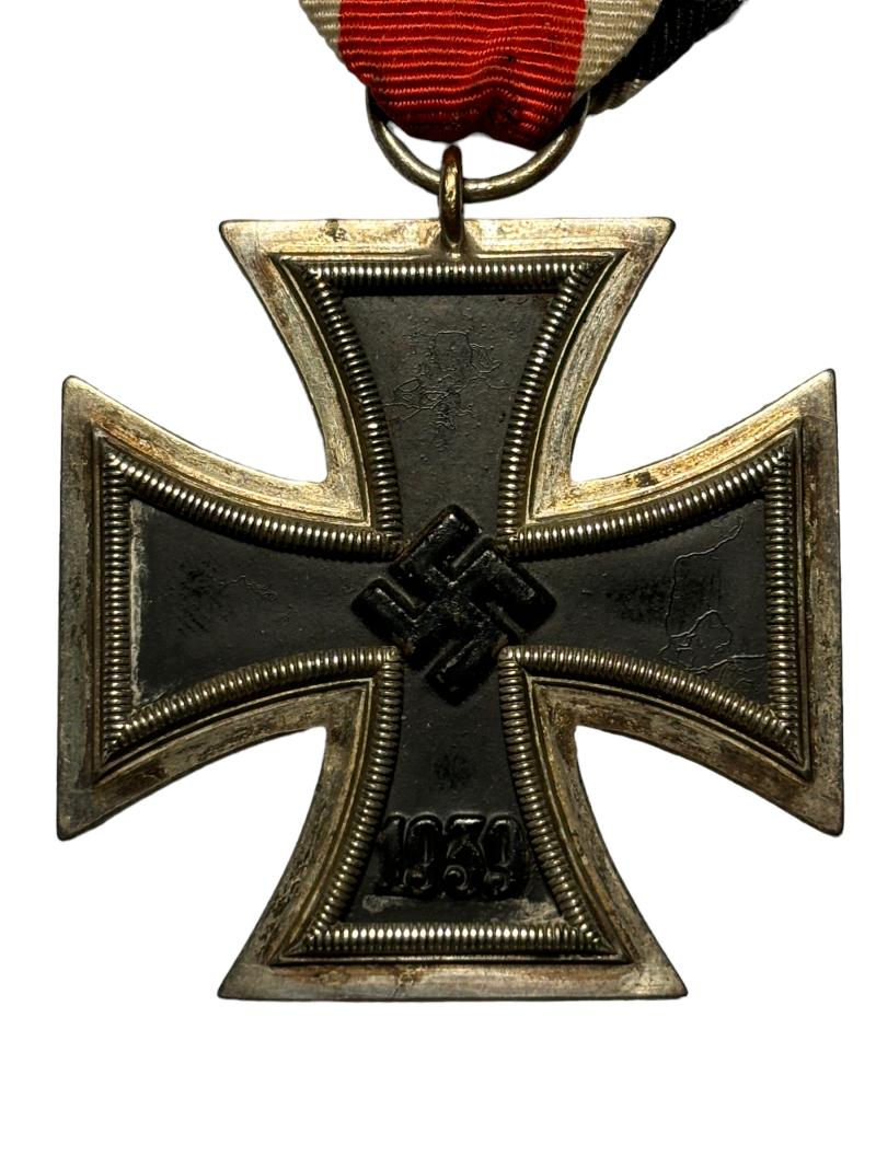 Eisernes Kreuz 2. klasse EK2 by Richard Simm & Sohne, Gablonz a.d.N. Three piece construction with magnetic, iron core. Maker marked 93 in the ring. Good condition with fantastic overal patina. Original ribbon.