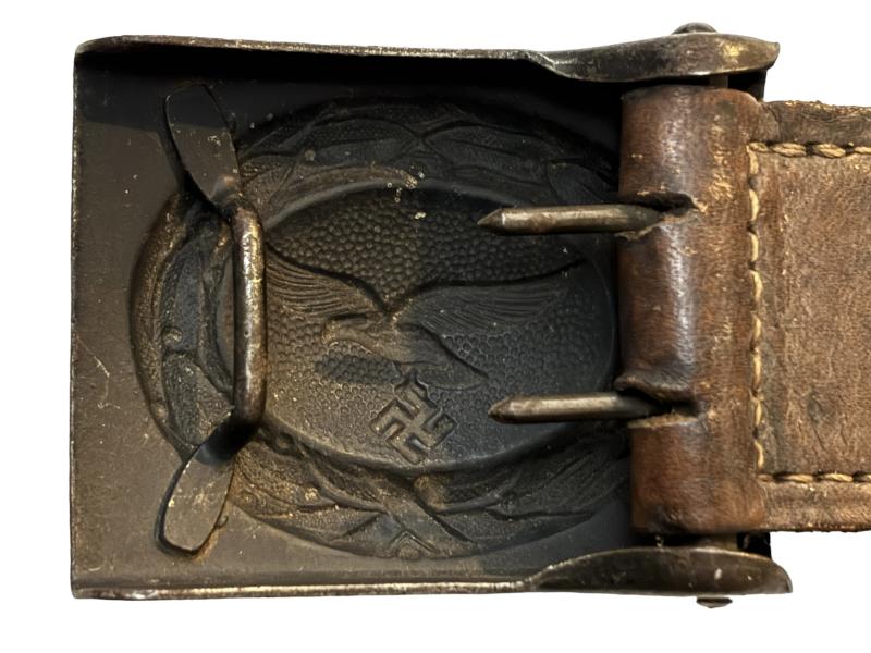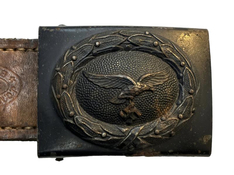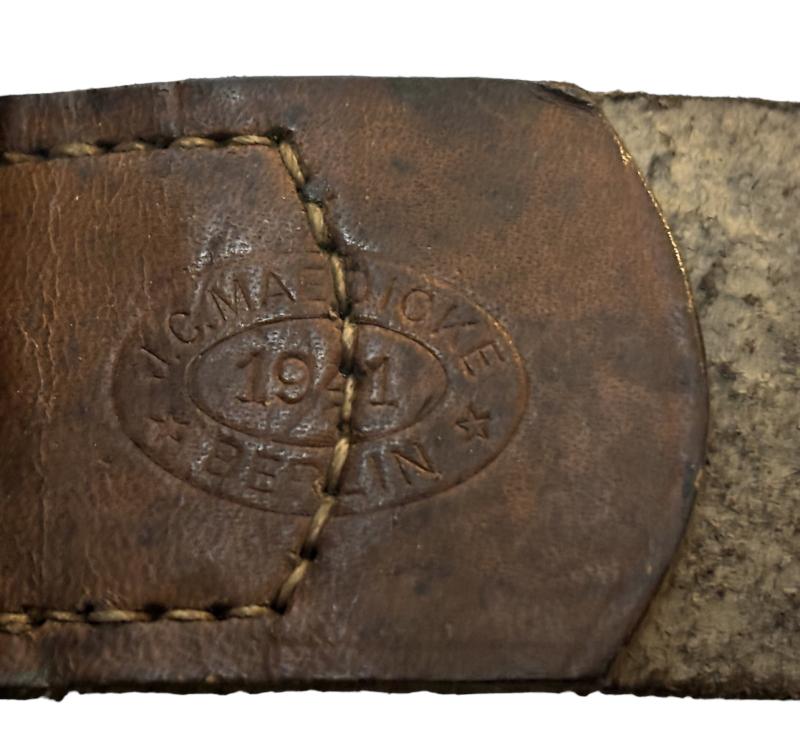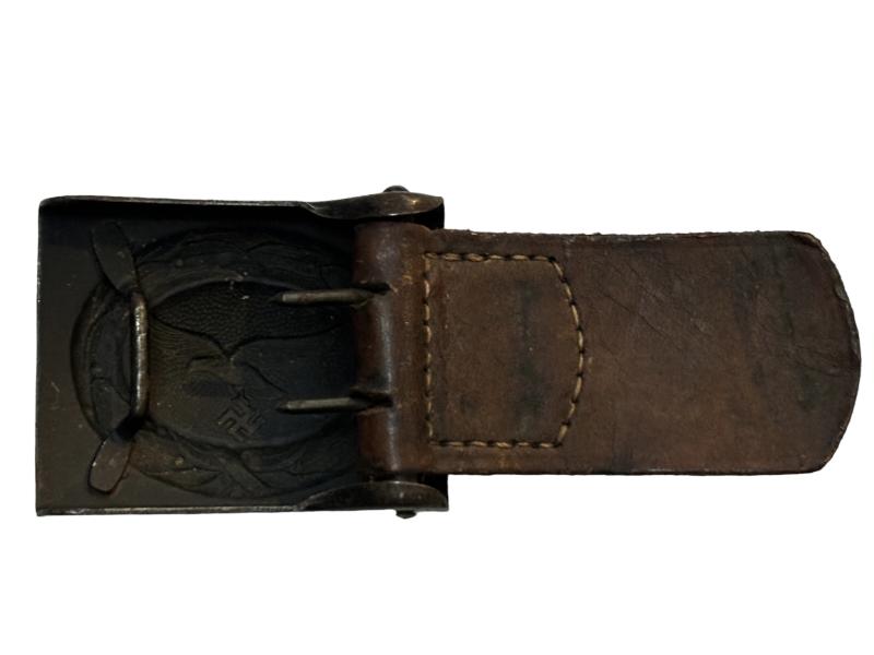 This is a nice used Luftwaffe Steel Belt Buckle with Blue Paint for EM/NCO. Comes with a Dark Brown Leather Tab marked with J.C. Maedicke 1941.