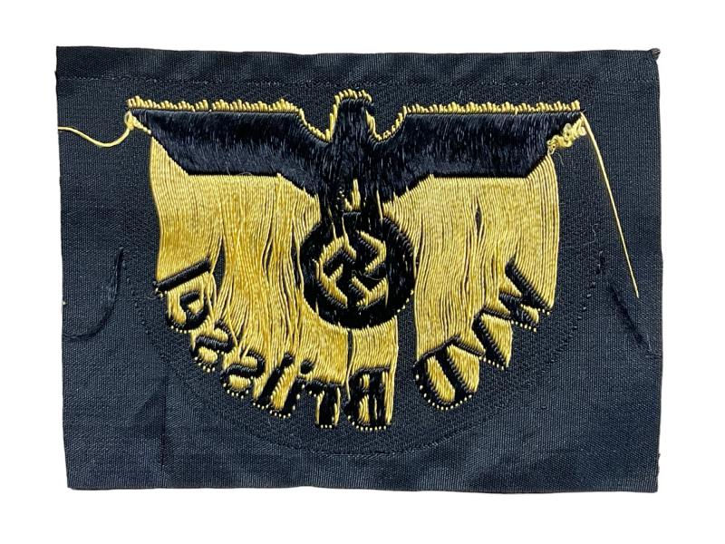 A Reichsbahn 'WVD Brüssel' Sleeve Eagle, still on cloth in perfect condition